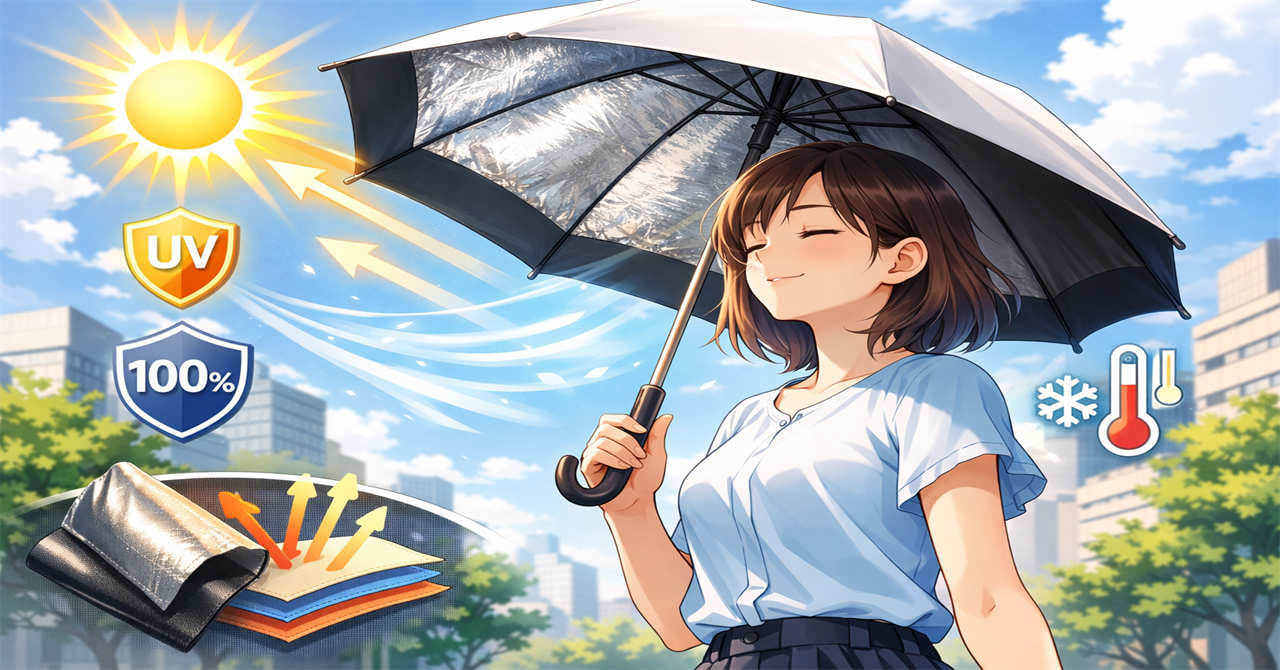 この記事では、涼しい日傘を選ぶときに見たいポイントを、遮光・遮熱・通気性・色・折りたたみやすさの視点から、やさしく整理しました。